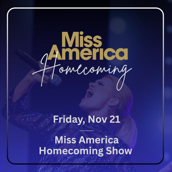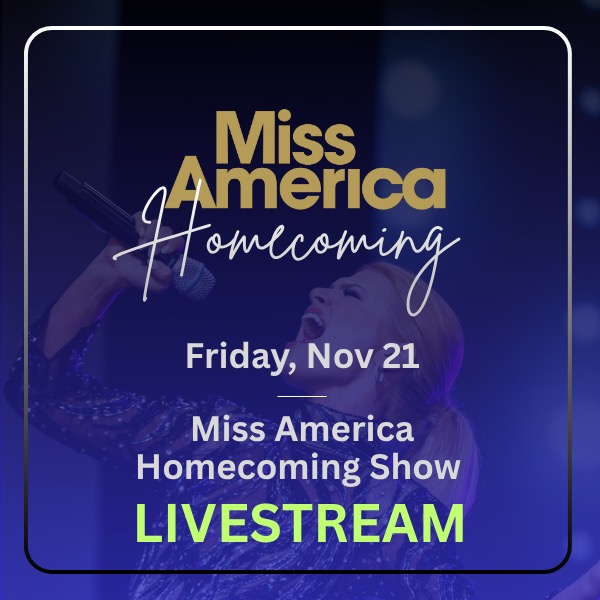 - 7:00pm Miss America Homecoming Show, the main event! (7:00 VIP Doors, 7:30 General Admission, 8:00 Show) featuring Cassie Donegan, the Top 11 Semifinalists of Miss America, and Special Guests! Tickets are available online until 11:59 PM on 11/19. After that tickets will only be available at the door. If you can’t make it you can still watch the livestream!